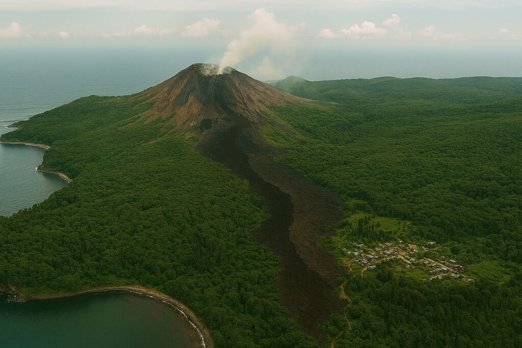 島に育った者の見慣れた目には、山肌は過去数回の噴火による溶岩流を積み重ね、それを自然の風化に任せた黒く冷えた光景である筈だった。ところが、今また新たな溶岩流をその肌の上に持ち出して来ている。