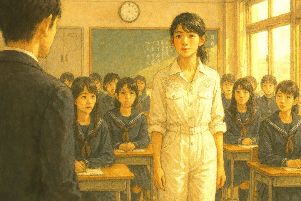 澤地はもう一度朱海に目を戻した。彼女は礼をし、二、三歩行ったところで安藤先生にもそれと分かるか分からないように頭を下げて、そのまま駆け去って行った。廊下の角に彼女が消えたとき、その姿がもう二度とこちらに戻って来ないような気がして彼は後悔のようなものを感じた。